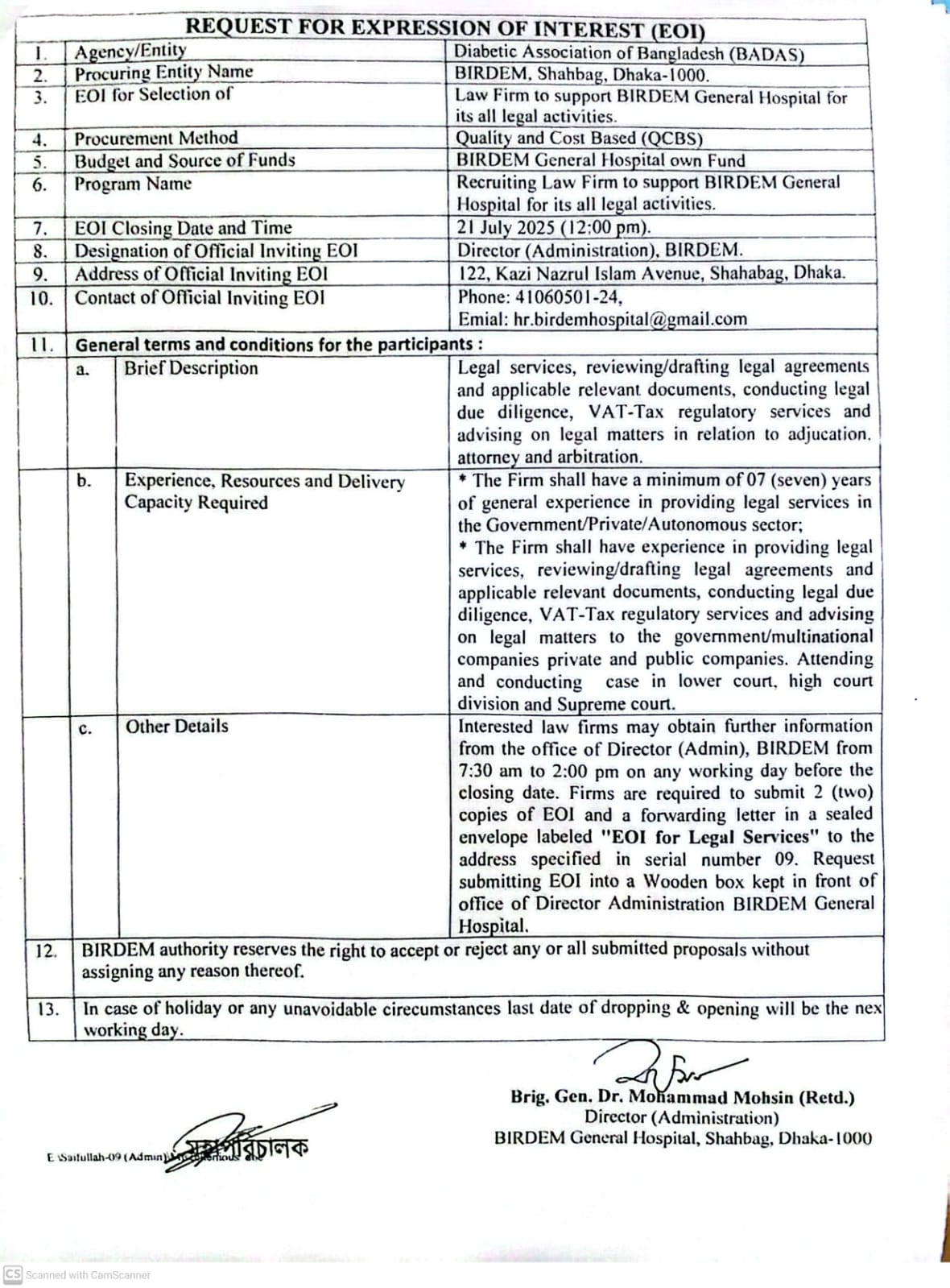 Expression of Interest (EOI) for Shortlisting of Structural Engineering Firm/Consultant (Deadline- 29 December 2025) |